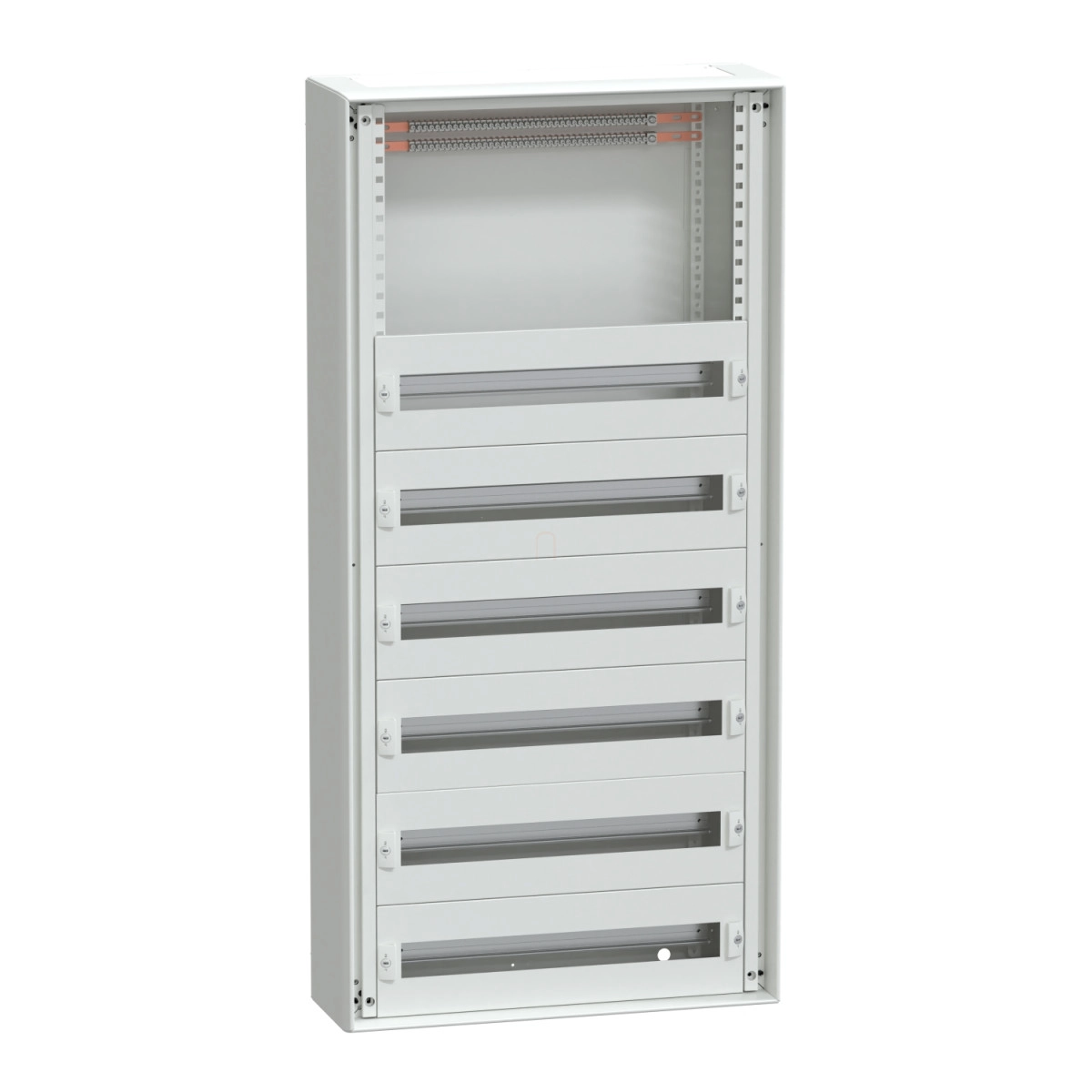 1 x szekrény, 2 x földelő készlet, 6 x előlap, 6 x moduláris sín