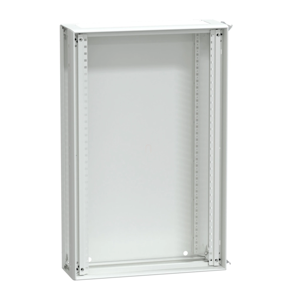 Az LVS08116 modell egy IP30 védettségi szintű, 600 mm szélességű, 930 mm magasságú és 205 mm mélységű fali rögzítésű burkolatbővítő, amely oldalsó lemezek nélkül kerül kiszállításra. A szekrény további előnye, hogy az elemek egymás mellé és egymásra is szerelhetők, így rugalmasan bővíthető az elektromos elosztórendszer a helyi igényeknek megfelelően. A készlet tartalmazza az alapvető szerkezeti elemeket: függőleges tartókat, hátsó lemezt, felső lemezt és alsó lemezt. A frontlemezt külön kell megrendelni. A szekrény 18 függőleges (50 mm-es) modult tartalmaz, és soronként 24 darab 18 mm-es modul elhelyezésére alkalmas, ami jelentős kapacitást biztosít az elektromos komponensek elhelyezésére.