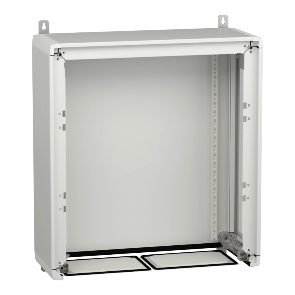 A PrismaSeT G szekrény funkcionális, készletben szállított fém burkolat, amely sokoldalú felhasználást tesz lehetővé különböző kisfeszültségű elektromos elosztási rendszerekben. A 600 mm széles és 650 mm magas kialakítás 11 függőleges modult (50 mm-es) tartalmaz, és soronként 24 darab 18 mm-es modult képes befogadni. A termék konstrukciója lehetővé teszi, hogy több szekrényt egymás mellé vagy egymás tetejére helyezve komplex elosztórendszereket építs ki. Az előlapi panel külön rendelendő, így személyre szabhatod az igényeidnek megfelelően.