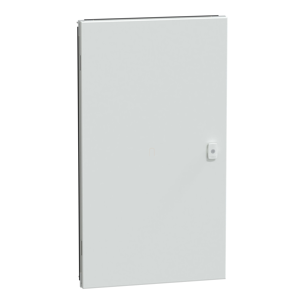 A PrismaSeT G termékcsaládhoz tartozó tömör ajtó robusztus kialakítással és magas szintű mechanikai védelemmel rendelkezik, amit az IK10 besorolás is bizonyít az EN/IEC 62262 szabványnak megfelelően. A termék elsősorban a 600 mm szélességű PrismaSeT G szekrényekhez lett tervezve, és 19 függőleges modult (50 mm) tartalmaz. Az ajtó teljes magassága 1020,5 mm, szélessége 600 mm, mélysége pedig 26 mm. A kezelt acéllemezből készült ajtó matt, texturált felületkezeléssel rendelkezik, ami nemcsak esztétikus megjelenést, hanem tartósságot is biztosít.