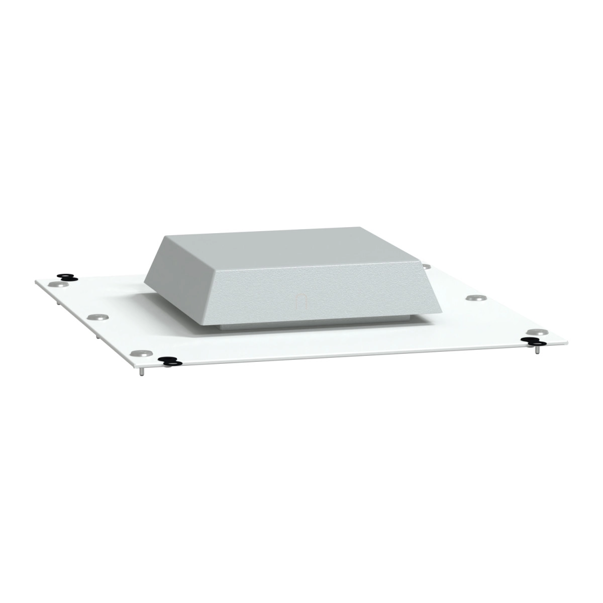 A Schneider Electric PrismaSeT P termékcsalád LVS08476 cikkszámú tetőlemeze kifejezetten a 650 mm széles és 400 mm mély elosztószekrényekhez lett kialakítva. Ez a fehér (RAL 9003) színű, ventilált, fém tetőelem különleges kialakításával optimális megoldást biztosít az alacsony feszültségű elektromos elosztórendszerekhez. A tetőlemez felső részén található kivágás lehetővé teszi a szellőzőcsonk felszerelését, így biztosítva a szekrény megfelelő szellőzését.