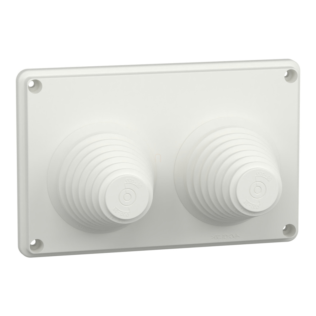 A membrán két darab 33-72 mm átmérőjű kábelbevezetési lehetőséget kínál, így rugalmasan alkalmazható különböző méretű kábelek esetén. Közvetlenül felszerelhető mind a szekrény felső, mind az alsó részére, így maximális rugalmasságot biztosít a telepítés során. A termék szigetelt anyagból készült, fehér (RAL 9003) színben, ami harmonikusan illeszkedik a PrismaSeT G szekrények megjelenéséhez, ugyanakkor biztosítja a megfelelő elektromos szigetelést is.
