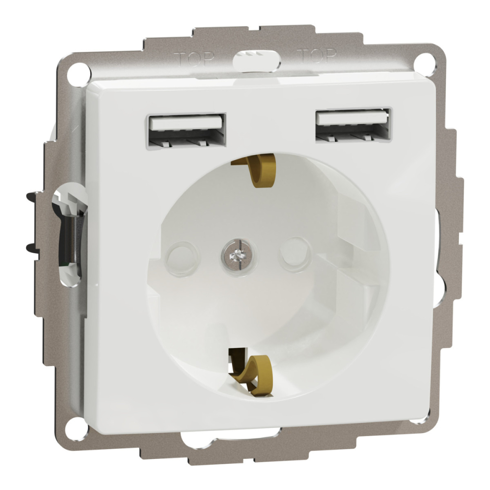 Schneider Electric Sedna Design & Elements - SDD111052 -2P+F csatlakozóaljzat, BZS, kettős USB töltővel, rugós, 16A/2.4A, fehér