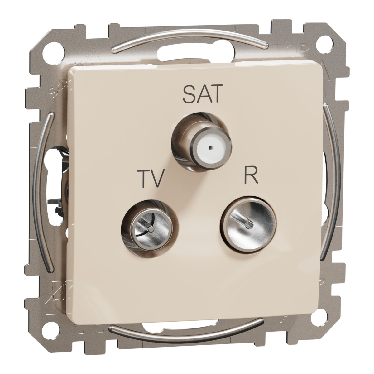 Ez a Schneider Electric Sedna Design sorozat részeként megalkotott TV/R/SAT végponti aljzat ideális választás minden olyan otthoni vagy professzionális környezetbe, ahol egyszerre van szükség televíziós, rádiós és műholdas vételre, de nincs szükség további vételi pontokra, vagyis a jeltovábbítás nem kívánatos. A végzáró kialakítás lehetővé teszi, hogy a készülék a rendszer utolsó elemeként működjön, így garantálva az optimális jelszintet és a megbízható csatlakozást. A bézs, RAL 1013 színkódú kivitel klasszikus és visszafogott megjelenést biztosít, amely kiválóan illeszkedik világos színvilágú enteriőrökhöz, legyen szó lakóépületről vagy irodai környezetről. A készülék felülete kezeletlen, fényes hatású, míg a látható részek hőre lágyuló, UV-stabilizált ABS műanyagból készültek, ami hosszú távon is garantálja a színtartósságot, és ellenáll az erősebb fényhatásoknak. A csatlakozók három különálló egységből állnak: a televíziós vételhez IEC 9,52 mm-es apa, az FM rádióhoz és a műholdas vételhez IEC anya csatlakozó tartozik, amelyek teljes mértékben kompatibilisek a leggyakoribb eszközökkel, így nem jelent kihívást a csatlakoztatás. A beépített csillapítási értékek optimalizáltak a különböző frekvenciasávokhoz: televíziós jelek esetén 4 dB csillapítás jellemzi a 47–2200 MHz-es tartományt, a rádiójelek 10 dB csillapítást kapnak a 88–125 MHz frekvenciasávban, míg a műholdas jelekhez tartozó 950–2400 MHz-es tartomány mindössze 1 dB csillapítással működik, ami biztosítja a nagy érzékenységet igénylő vételi módok kiváló minőségét. A csatlakozások csavaros bekötéssel történnek, amely gyors, stabil és biztonságos telepítést tesz lehetővé. A készülék süllyesztett kialakításának köszönhetően harmonikusan illeszkedik a falfelületbe, mindössze 17,4 mm-rel emelkedik ki belőle, így vizuálisan is visszafogott marad. A 73×73 mm-es alapterület és a 41 mm-es mélység mellett 22,5 mm-es beágyazási mélységgel rendelkezik, ami kompatibilissé teszi a szabványos szerelvénydobozokkal. A rögzítési módok közé tartozik a csavaros megoldás, valamint a 55–70 mm között állítható karmok, így a telepítés egyszerű és sokféle falszerkezethez igazítható. Az IP20 védettségi szint kizárólag beltéri, száraz környezetre teszi alkalmassá, míg az IK03 ütésállósági szint a mindennapi használat során jelentkező mechanikai igénybevételek ellen is megfelelő védelmet nyújt. A termék CE megfelelőségi jelöléssel ellátott, megfelel az EU RoHS és REACh környezetvédelmi irányelveinek is, így biztosítva a fenntarthatóságot és a környezeti megfelelést. A Sedna sorozat ezen tagja része a Schneider Electric „Use Better, Use Longer, Use Again” programjának, amely előtérbe helyezi a hosszú élettartamot és az újrahasznosítást: a készülék látható részei 43%-ban újrahasznosított műanyagból készülnek, csomagolása pedig újrahasznosított kartonból áll. Ez a végponti TV/R/SAT aljzat tökéletes választás mindazok számára, akik egyetlen vételi ponton szeretnék koncentrálni a médiajelek fogadását, miközben számít a megbízhatóság, az esztétikus kialakítás és a környezettudatos termékválasztás is. Nem ajánlott olyan rendszerekhez, ahol szükséges a jeltovábbítás, mivel ez a kivitel kizárólag záróegységként használható. A Sedna bézs színű végzáró aljzata eleganciát, stabil teljesítményt és fenntartható kialakítást nyújt minden modern környezetben.