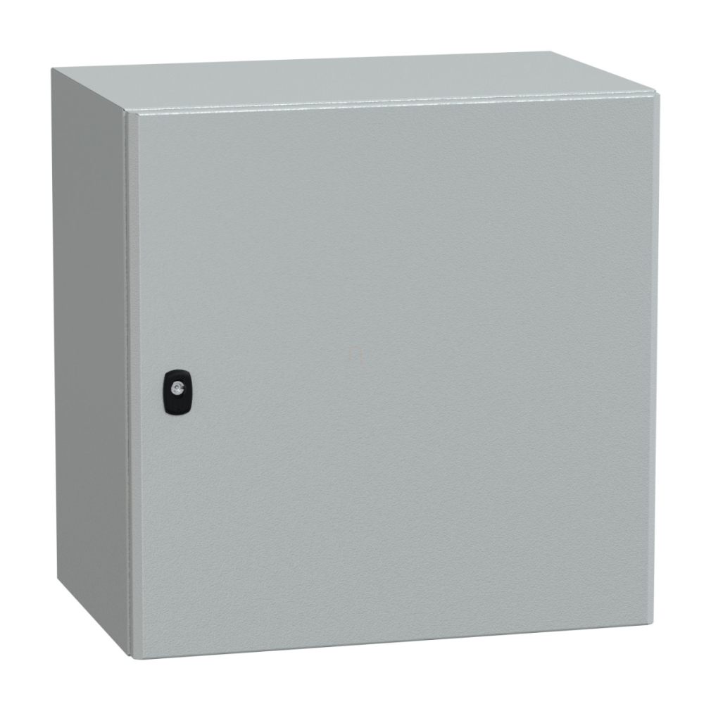 Az NSYS3D6640 elosztószekrény egyetlen darabból álló, erős acél házból készül, epoxy-poliészter por bevonattal, ami kiváló korrózióállóságot biztosít. A szekrény egyszerű hozzáférést biztosít a benne elhelyezett berendezésekhez a sima, egyszerű kivitelű ajtón keresztül, amely 120°-ban nyitható és megfordítható. A biztonságot a 3 pontos, 3 mm-es duplarudas zár garantálja. A termék számos praktikus tulajdonsággal rendelkezik: vályú alakú, dupla lemezvastagságú első sínnel, csavarral rögzíthető kábelbevezetési lemezzel, valamint zsanérokkal eltávolítható ajtóval. A szekrény nem tartalmaz szerelőlapot, így a felhasználó igényei szerint alakíthatja ki a belső elrendezést. A standard kábelbevezetési lemez és a fali rögzítéshez szükséges tartozékok tovább növelik a termék sokoldalúságát. A Schneider Electric PanelSeT S3D sorozata földelő csavarokat is tartalmaz, így biztosítva a megfelelő földelési lehetőséget.