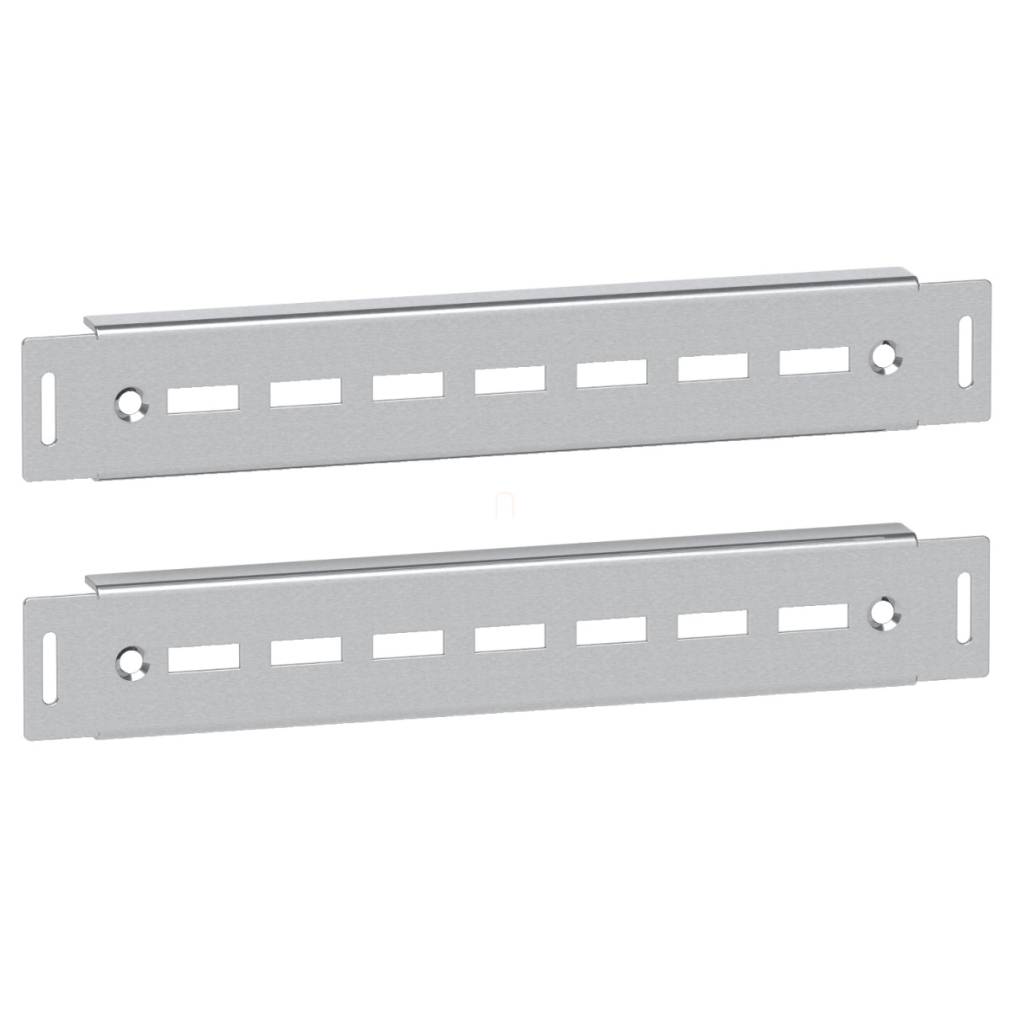A NSYHLCR80 nehéz terhelésű keresztsínek készletben érkeznek, két darab galvanizált acél sínt tartalmazva, amelyek kifejezetten a PanelSeT és PanelSeT SF rendszerekkel kompatibilisek. A sínkészlet 800 mm névleges szélességű (750 mm rögzítési távolsággal), 3 mm vastagságú anyagból készül, és akár 475 kg terhelést is képes elviselni, így ideális választás a nehéz komponensek biztonságos rögzítéséhez. A sínrendszert az elektromos szekrények belső szerkezetére, az alsó vázra kell felszerelni, M6-os csavarokkal. A 25 mm-es lépésközzel állítható kialakítás nagy rugalmasságot biztosít a különböző szerelési igények kiszolgálásához.