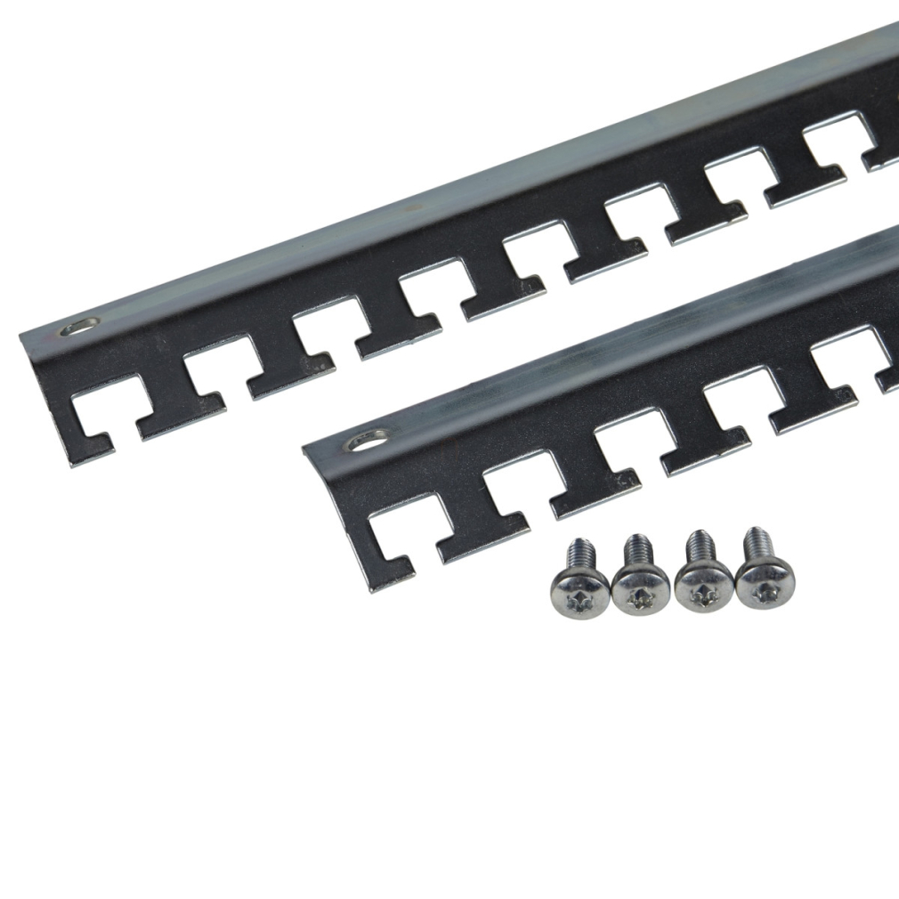 A NSYCFS128 egy szett, amely két darab kábelvezető sínt tartalmaz, amelyeket közvetlenül a szekrény szerkezetére lehet rögzíteni. A sínek horganyzott acélból készülnek, ami tartósságot és hosszú élettartamot biztosít még ipari környezetben is. A 120°-os támasztási szög ideális a kábelek megfelelő elhelyezéséhez és tehermentesítéséhez, ami csökkenti a kábelek megtörésének kockázatát és növeli a rendszer megbízhatóságát. Az egyik legnagyobb előnye ennek a keresztsín rendszernek, hogy 25 mm-enként állítható, így tökéletesen illeszkedik a különböző kábelezési igényekhez és elrendezésekhez.