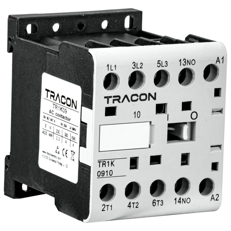 Segédkontaktor 12 A, 5,5 kW, 24 VDC, 3×NO fő+1×NO segéd TR1K1210B4 Tracon