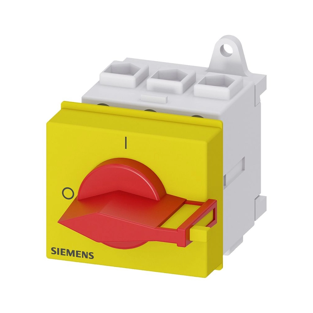 Siemens 3LD2130-0TK13 BE-KI kapcsoló, 3P, 25A, sínre szerelhető, maszkolható, piros/sárga