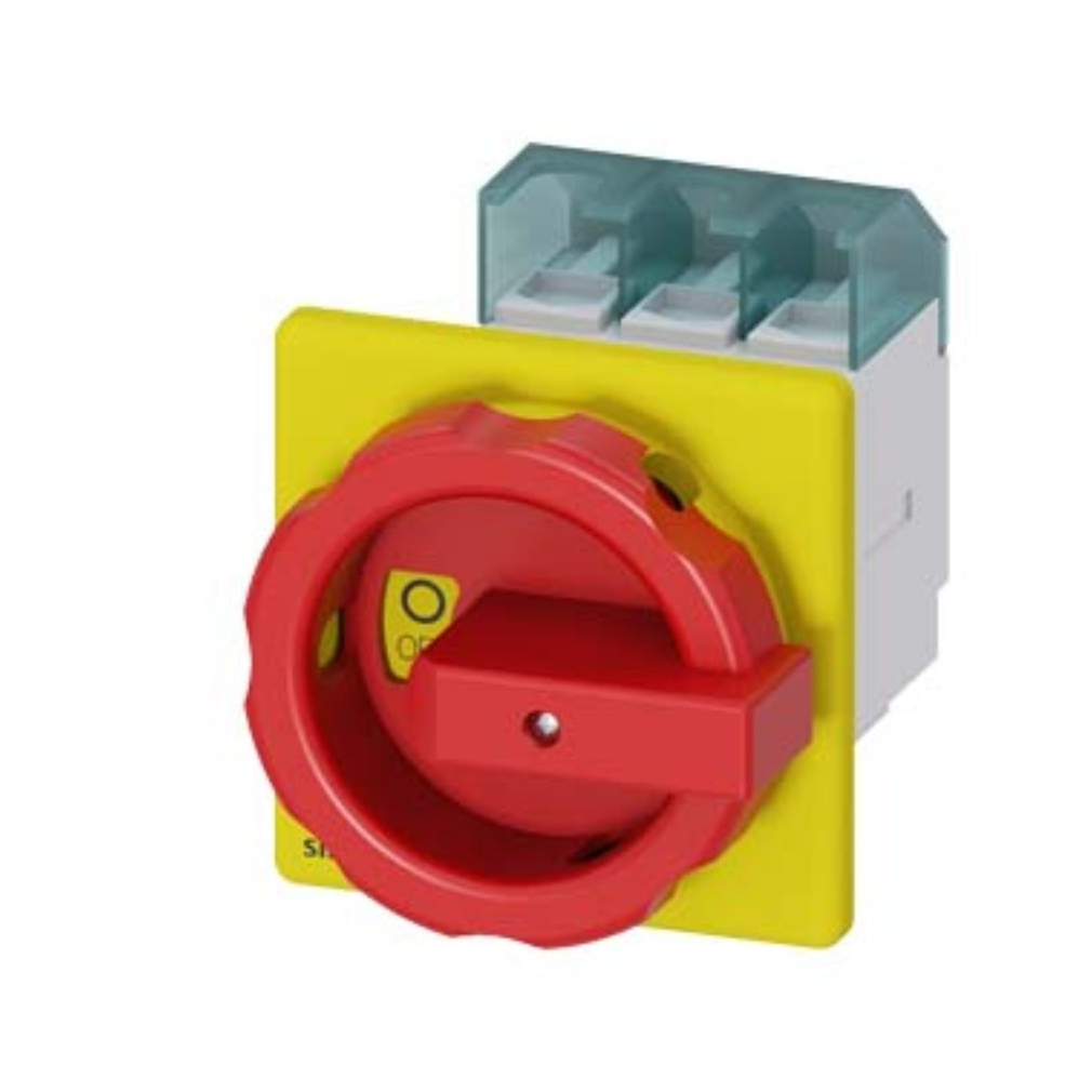 Siemens 3LD2555-0KT53 BE-KI kapcsoló, 3P, 63A, előlapra, 22,5mm-es furatba szerelhető, piros/sárga