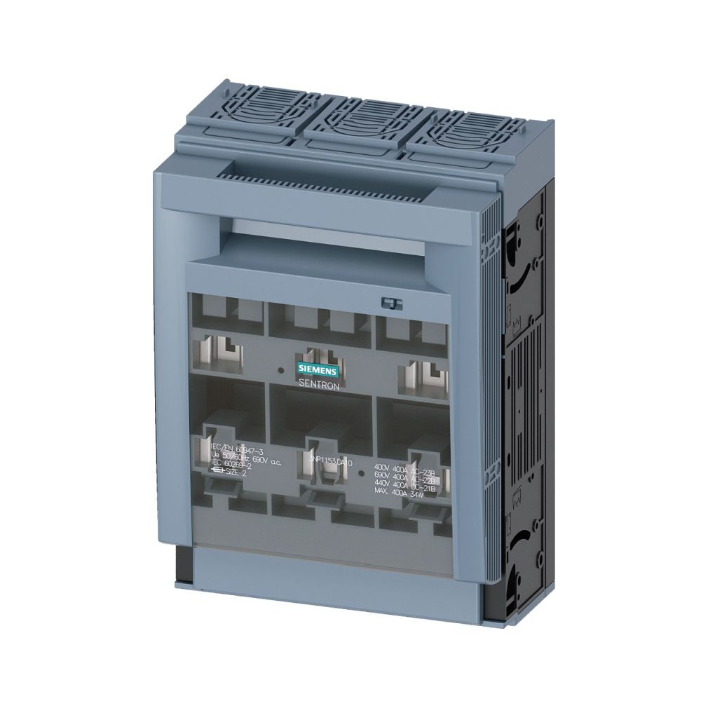 SENTRON, Biztosítékos szakaszolókapcsoló 3NP1\nA SENTRON 3NP1 egy 3 pólusú, NH2, 400 A kapacitású biztosítékos szakaszolókapcsoló, amely szerelőlapra szereléshez és felszereléshez készült.