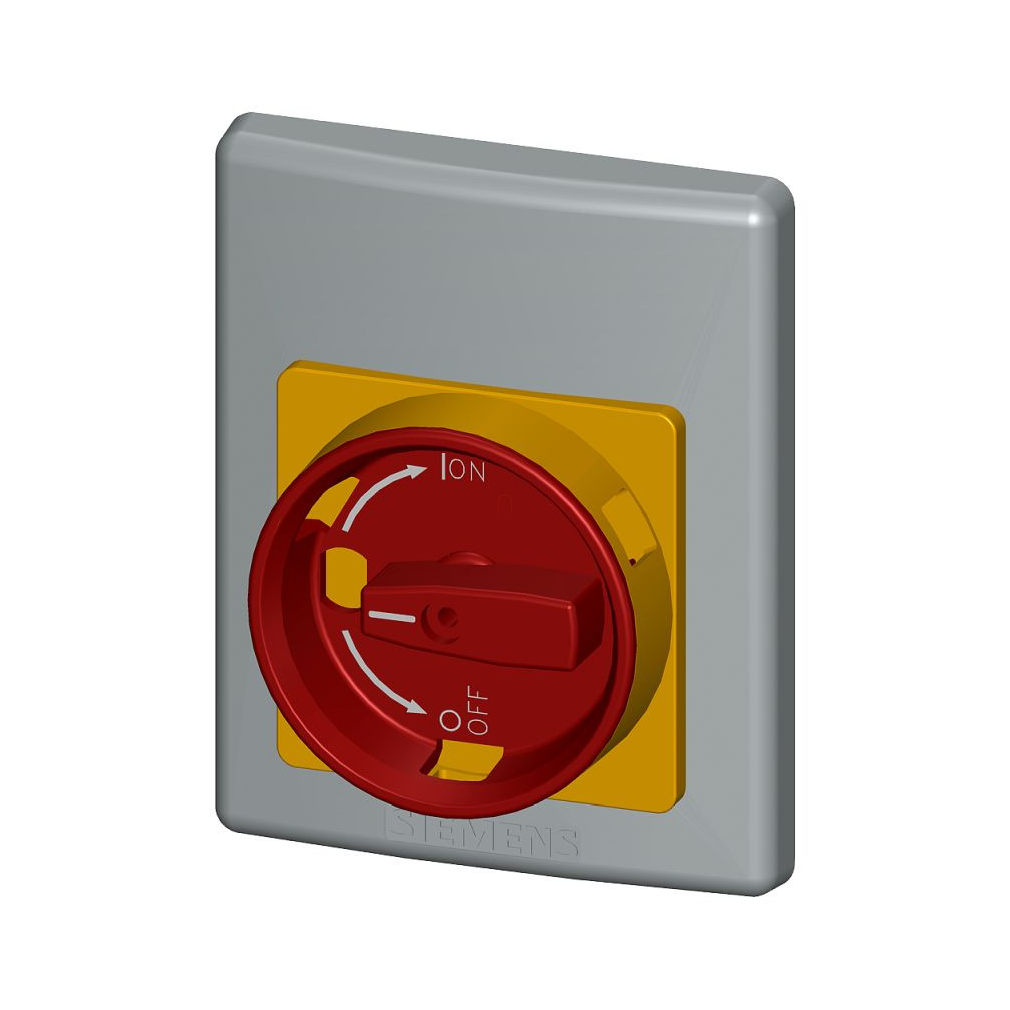 Siemens 3RV1923-4E öntött műanyag előlap vészleállító forgó működtető mechanizmussal, IP55 (S00, S0, S2, S3 mérethez)