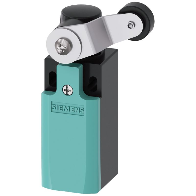 Siemens 3SE5232-0LK15-1AN7 végálláskapcsoló, műanyag görgős (180 fokkal elfordított, óramutató járása szerinti 70 foknál rögzített), 1NO+1NC (snap), műanyag ház, 31mm