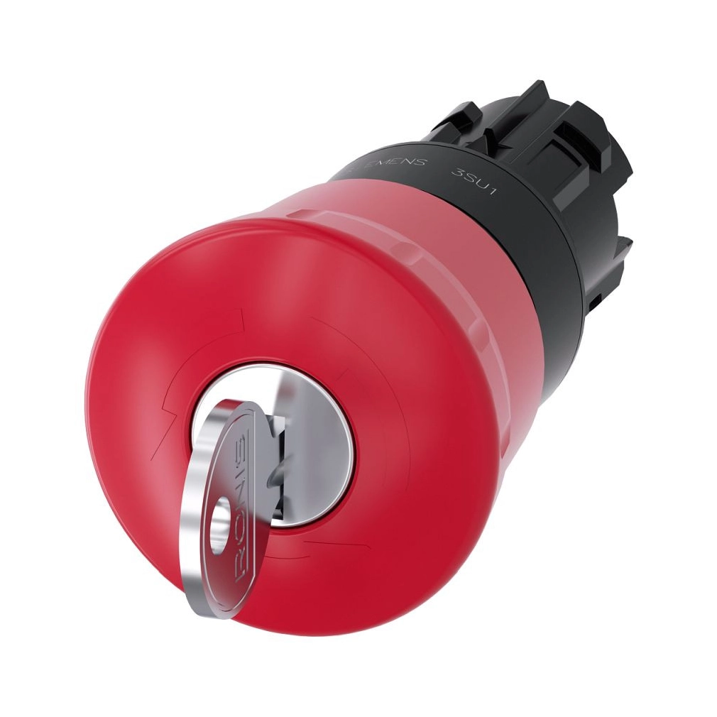 Siemens 3SU1000-1HF20-0AA0 kulcsos vészgomb fej, 40mm-es, piros, reteszoldás forgatással, RONIS SB30 Sir