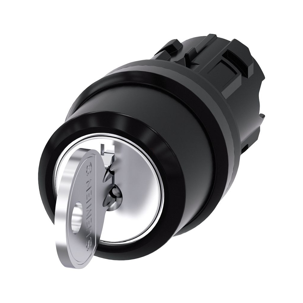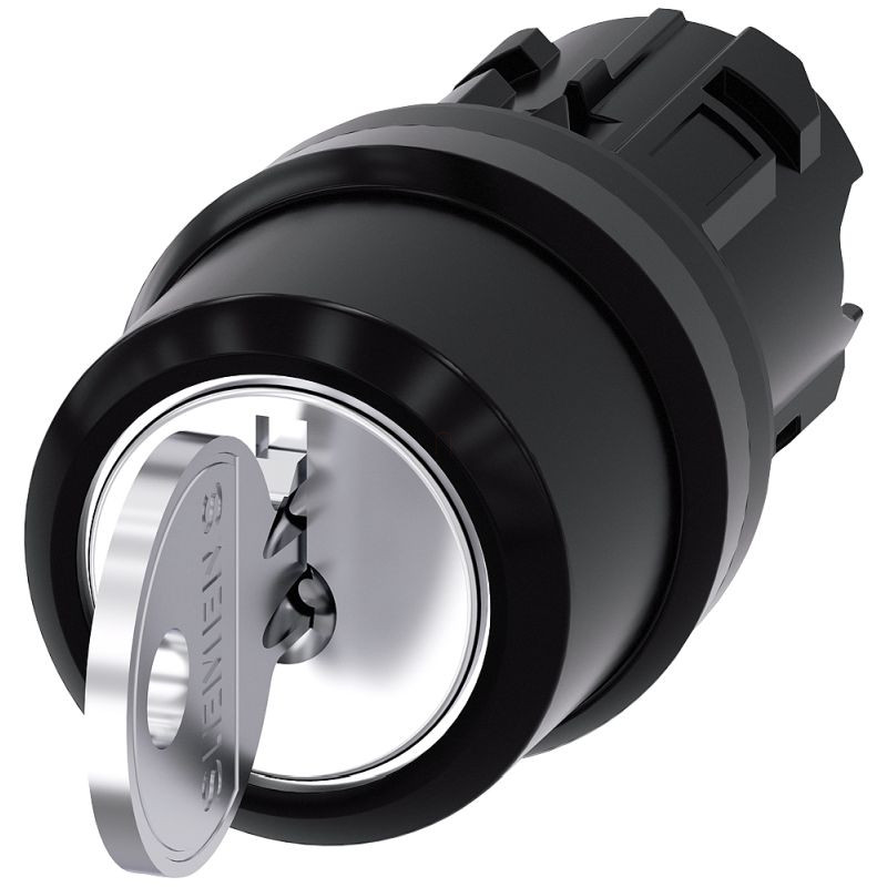 Siemens 3SU1000-4CL01-0AA0 kulcsos kapcsolófej, 3 állású, RONIS 455, kulcs O állásban kivehető Sirius