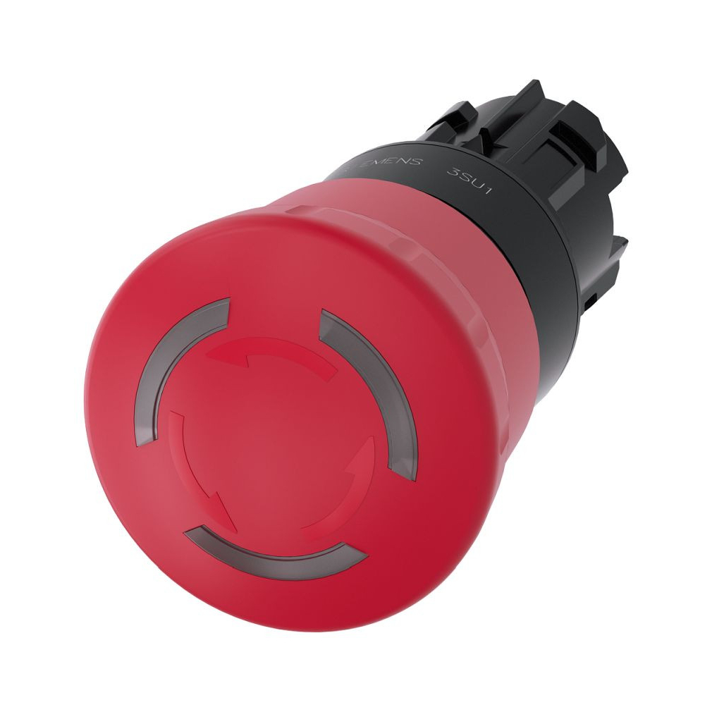 Siemens 3SU1001-1HB20-0AA0 világító vészgomb fej, 40mm-es, piros, reteszoldás forgatással Sirius