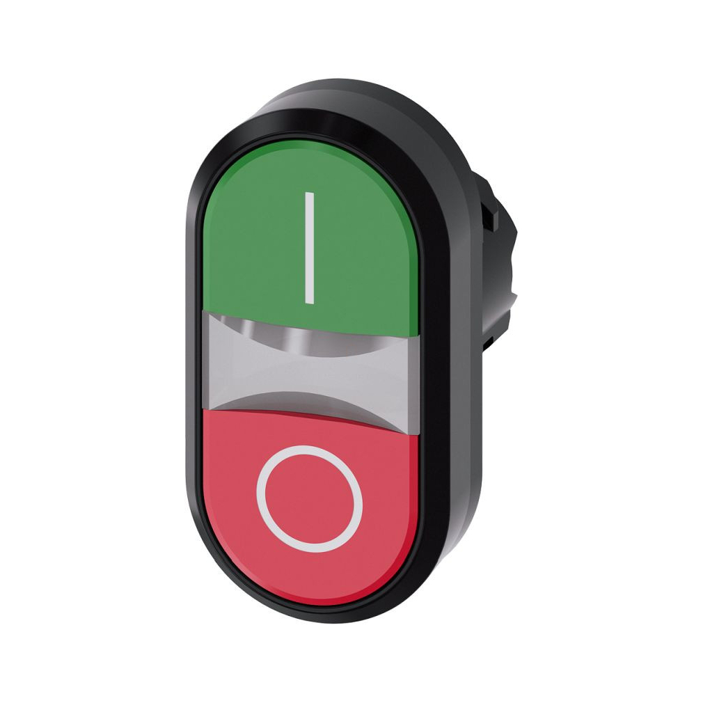 Siemens 3SU1001-3AB42-0AK0 dupla fejű világító nyomógomb, zöld ( I ) / piros (O) Sirius