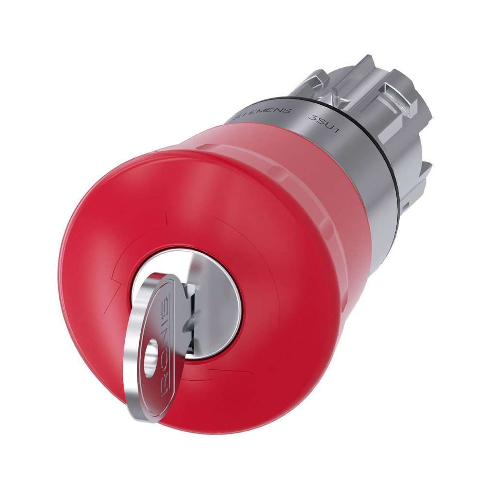 Siemens 3SU1050-1HF20-0AA0 kulcsos vészgomb fej, 40mm-es, piros, reteszoldás forgatással, RONIS SB30, fé