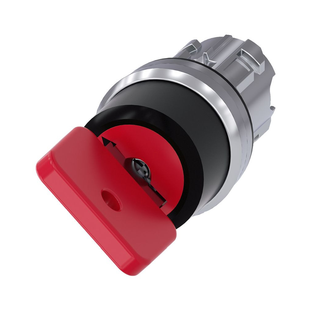 Siemens 3SU1050-4FC01-0AA0 kulcsos kapcsolófej, 2 állású, visszaálló, fém, O.M.R. 73037, piros