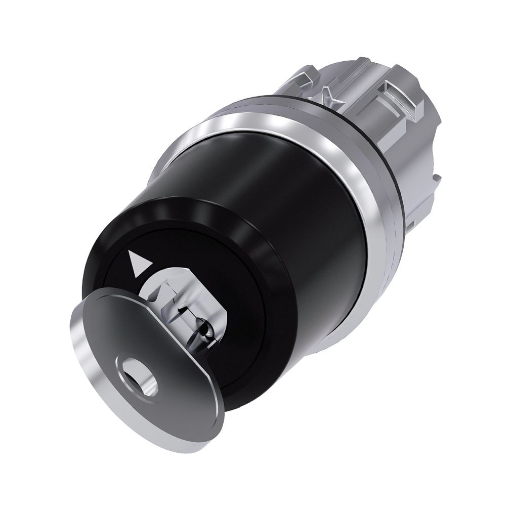 Siemens 3SU1050-5BF11-0AA0 kulcsos kapcsolófej, 2 állású, CES SSG10, kulcs O+I állásban kivehető, fém Sirius