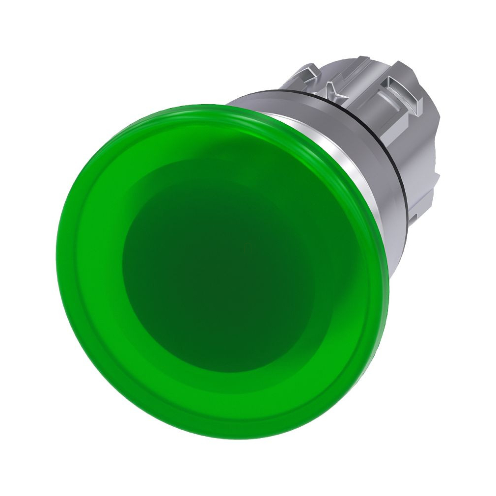 Siemens 3SU1051-1BD40-0AA0 világító nyomógombfej, zöld, 40 mm-es, fém Sirius