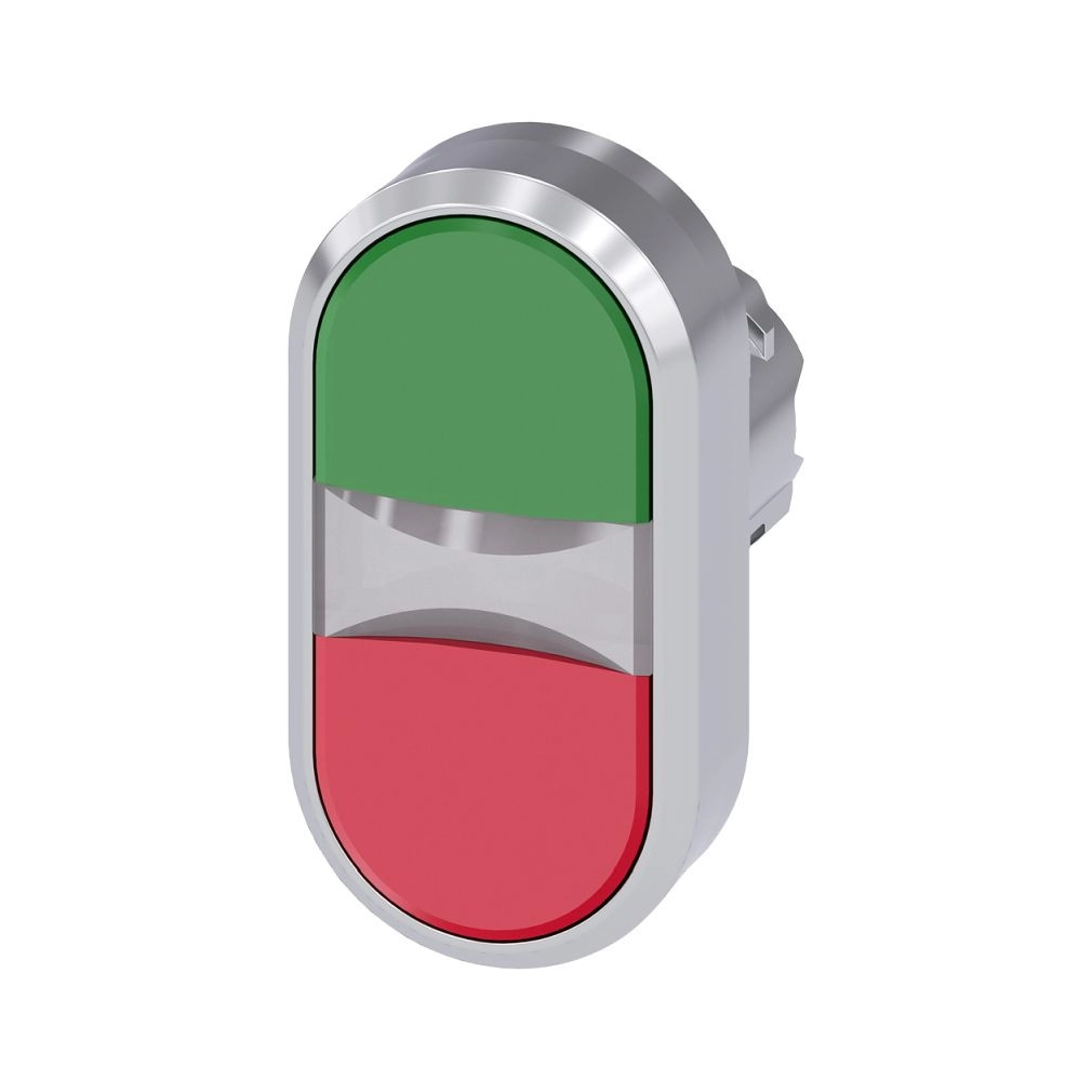 Siemens 3SU1051-3AB42-0AA0 dupla fejű világító nyomógomb, zöld / piros, fém Sirius