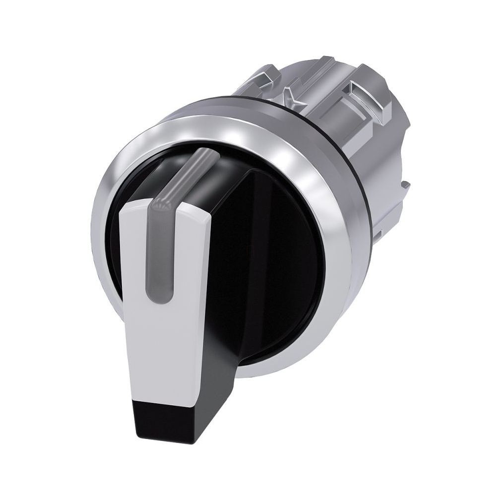 Választókapcsoló, megvilágítható, 22 mm, kerek, fém, fényes, fehér\nA Siemens SIRIUS ACT választókapcsolók elektromos terhelések kapcsolására és szabályozására szolgálnak, kiemelkedő minőségű anyagokból készült, innovatív dizájnjukkal.