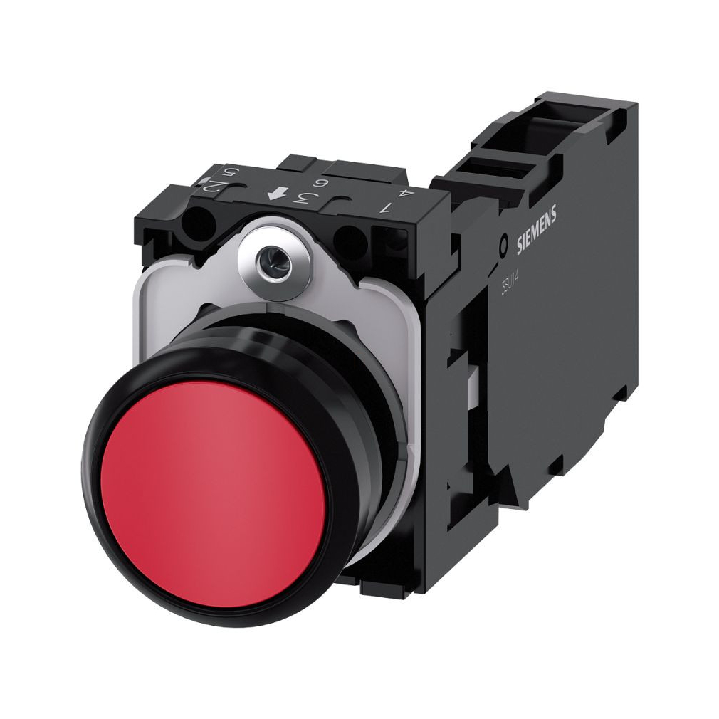 Siemens 3SU1100-0AB20-1FA0 komplett nyomógomb, piros, 1NO+1NC, csavaros Sirius