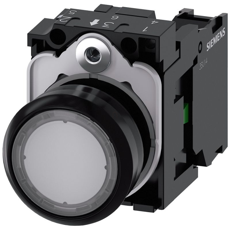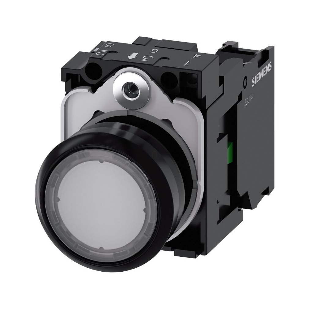 Siemens 3SU1100-0AB70-1BA0 komplett nyomógomb, átlátszó, 1NO, csavaros Sirius