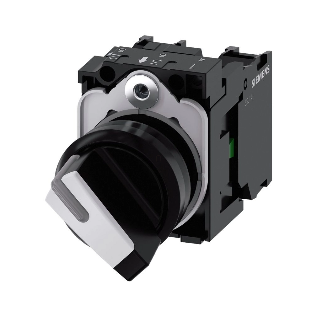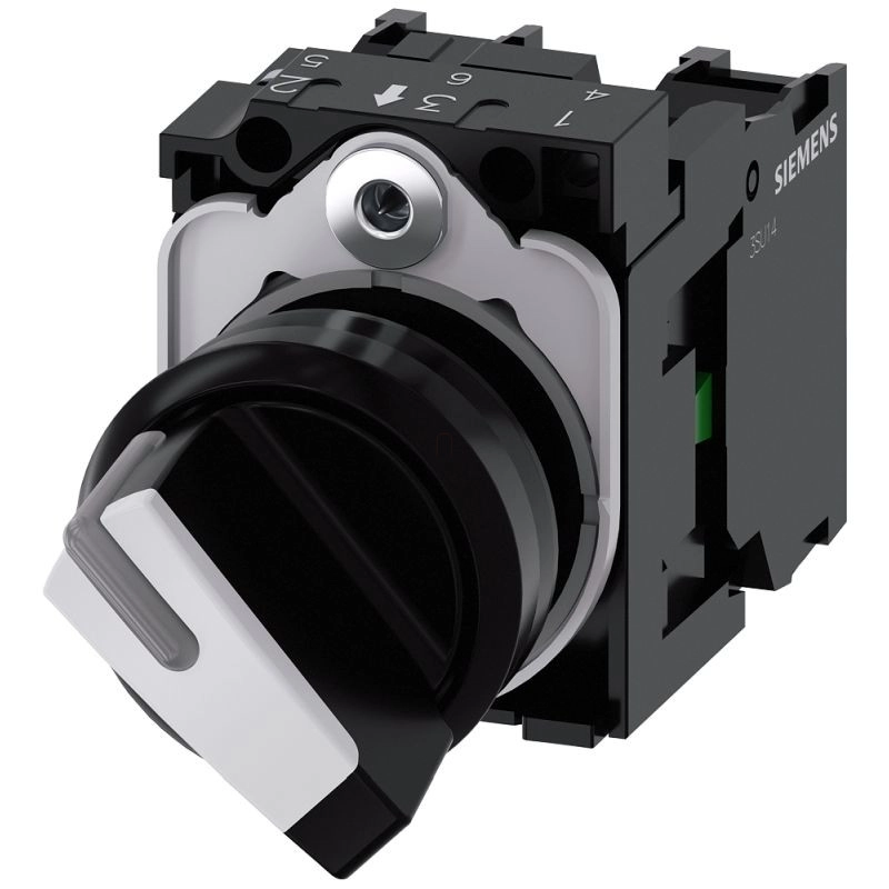 Választókapcsoló, világító, 22 mm, kerek, műanyag, fehér\nA Siemens SIRIUS ACT választókapcsoló elektromos terhelések kapcsolására és szabályozására szolgál, kiemelkedő robusztussággal és egyszerű telepítéssel.