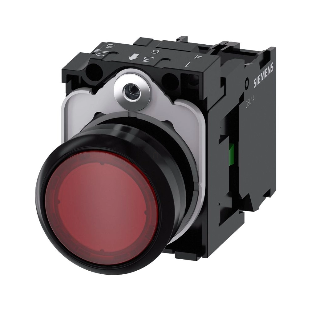 Siemens 3SU1102-0AB20-1BA0 komplett világító nyomógomb, piros, 24VAC/DC, 1NO, csavaros Sirius