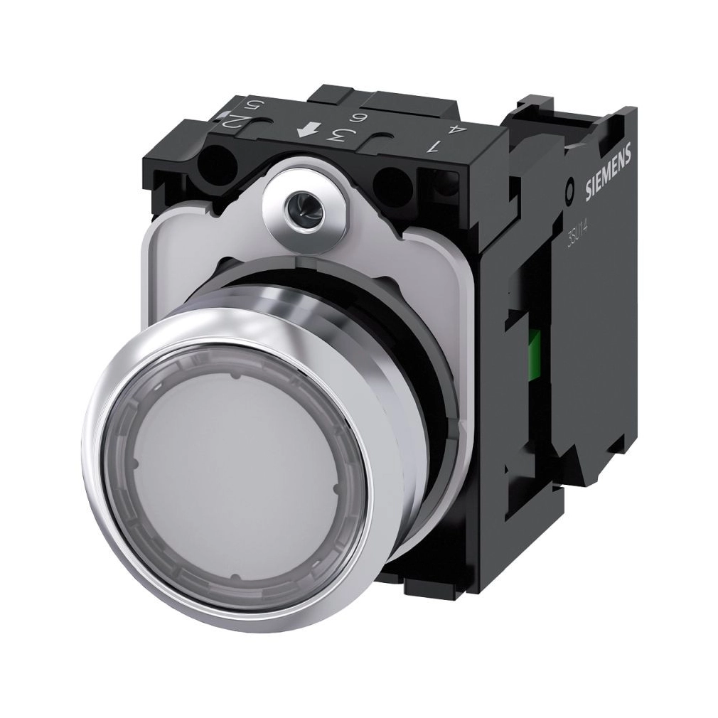 Siemens 3SU1150-0AB70-1BA0 komplett nyomógomb, átlátszó, 1NO, fém, csavaros Sirius