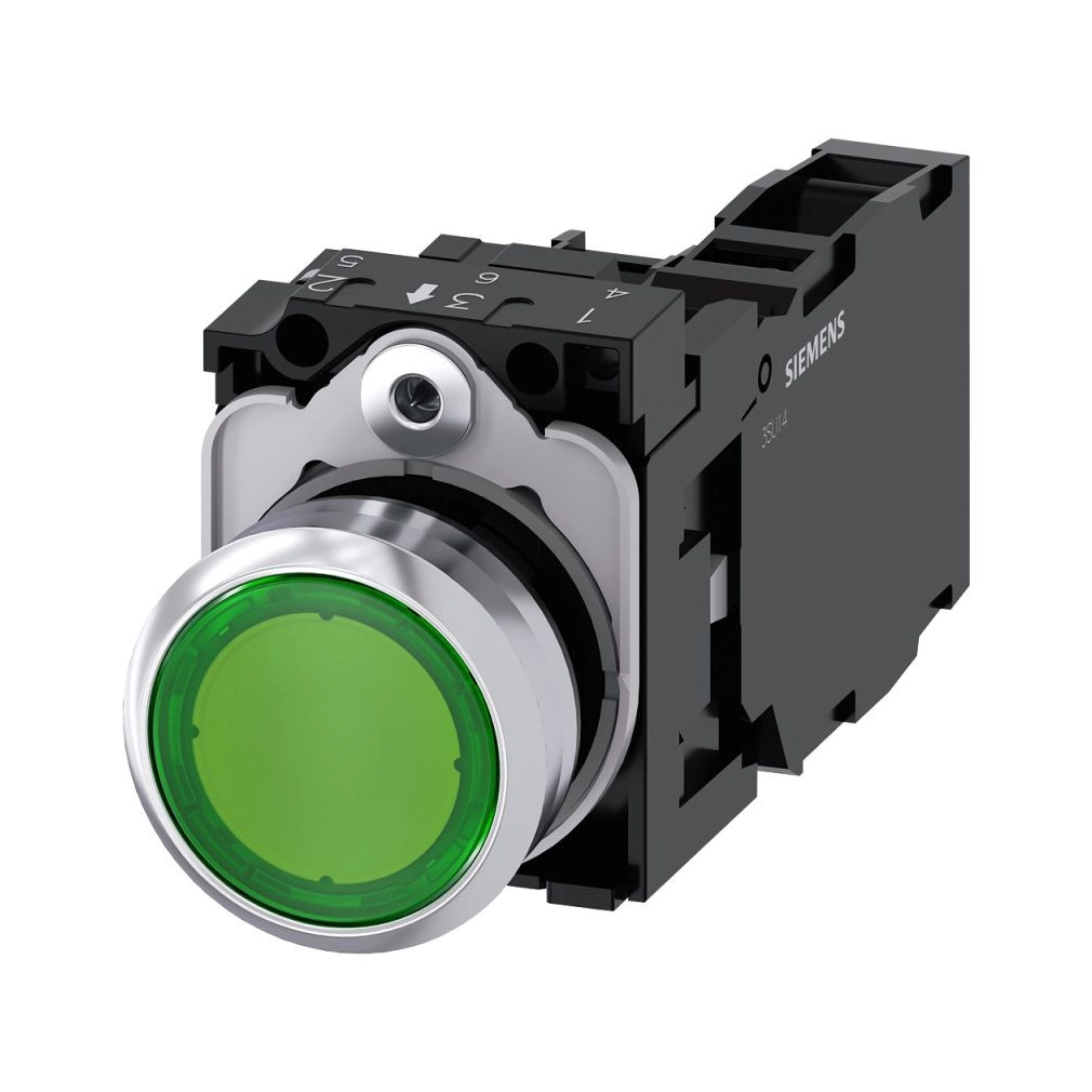 Siemens 3SU1152-0AB40-1FA0 komplett világító nyomógomb, zöld, 24VAC/DC, 1NO+1NC, fém, csavaros Sirius