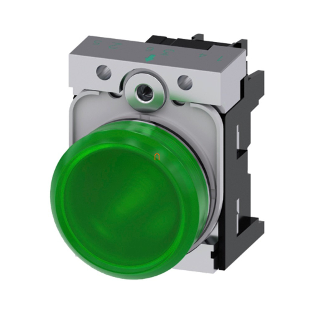 Siemens 3SU1156-6AA40-1AA0 komplett jelzőlámpa, zöld, 230VAC, fém, csavaros Sirius