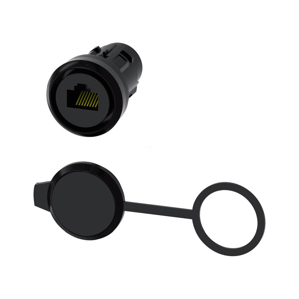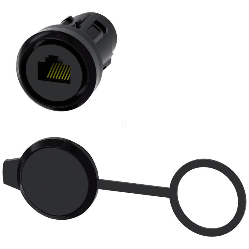 Siemens 3SU1950-0GB80-0AA0 22-es furatba szerelhető RJ45 Cat.6 toldó védősapkával, fekete, műanyag