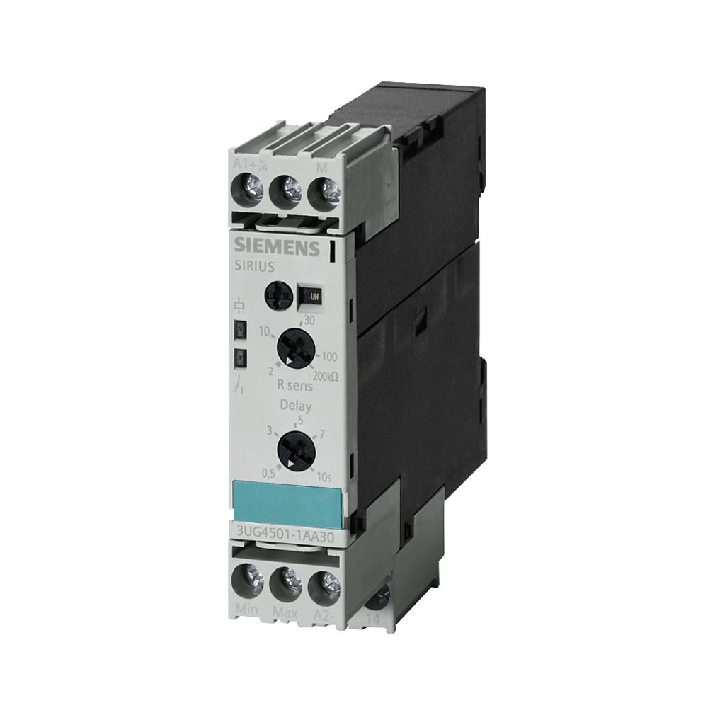 Siemens 3UG4501-1AW30 folyadékszint felügyeleti relé, 24-240VAC/DC, 2-200k ohm, 0,5-10s, csavaros
