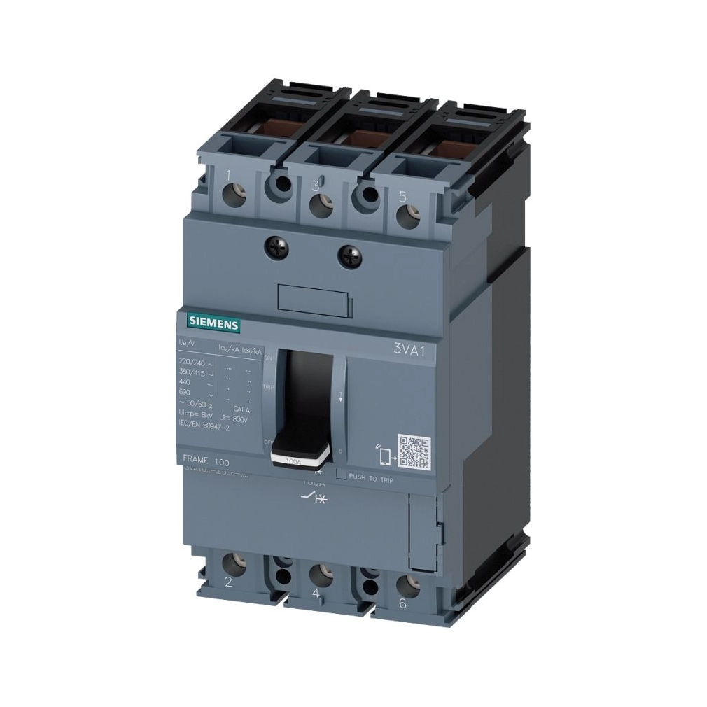 Megszakító 3VA1\nA SENTRON 3VA1 öntött házas megszakító megbízható túlterhelés elleni védelemmel és rövidzárlat elleni védelemmel rendelkezik, széles választékot kínálva a moduláris tartozékok terén.