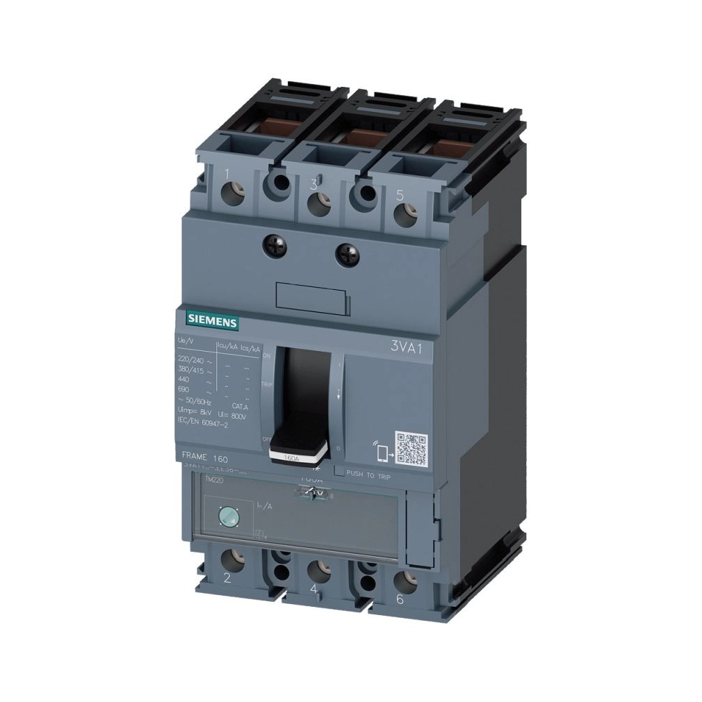 Siemens 3VA1112-3EE36-0AA0 kompakt megszakító 3P 125A 25kA, TM220 ATFM, vonalvédelem, kengyeles csatlakozó