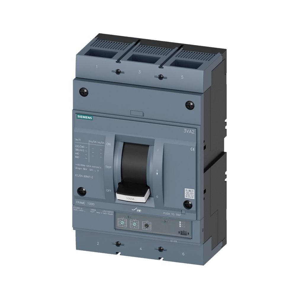 Megszakító 3VA2\nA SENTRON 3VA2 öntött házas megszakítók hatékony védelmet nyújtanak túlterhelés és rövidzárlat esetén, moduláris kialakításukkal és széleskörű funkcióikkal.
