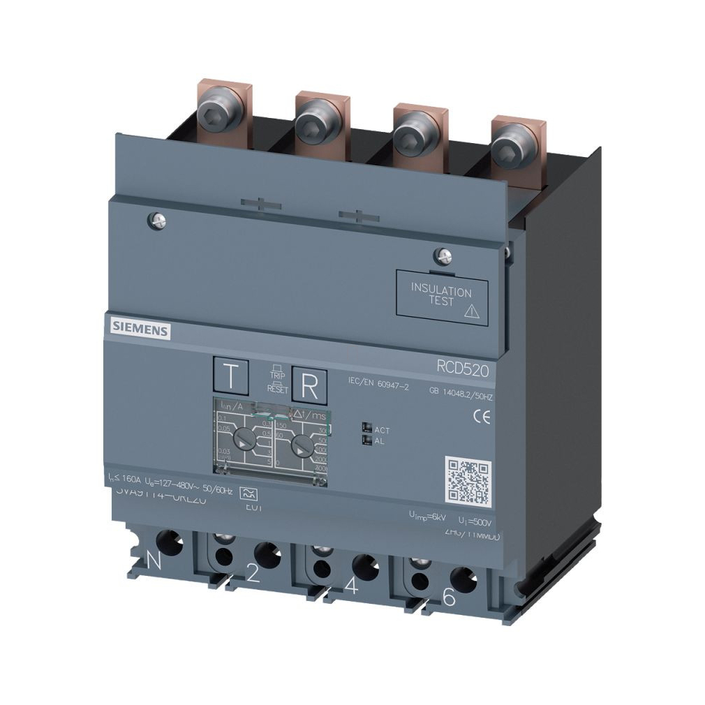 Siemens 3VA9114-0RL20 RCD520 hibaáram kioldó, 0,03-5A, 30mA, A típus, 4P 3VA1 160 A-hez