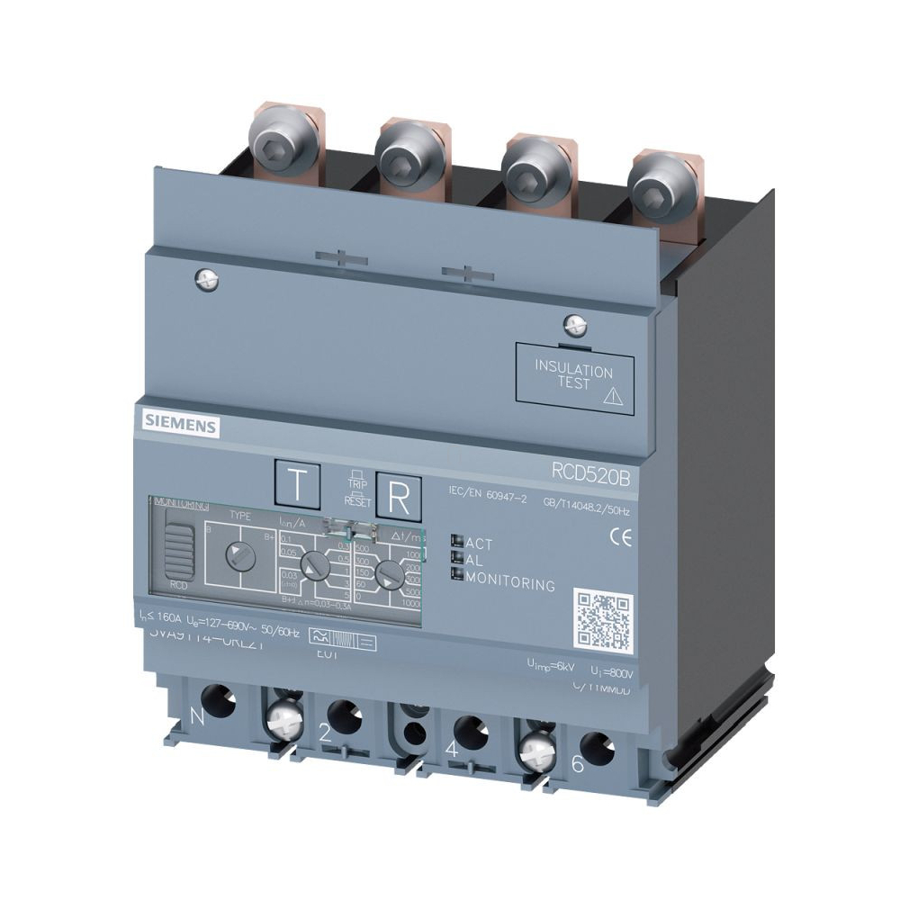 A RCD520B típusú hibaáram-védőkapcsoló a terhelésoldalon biztosítja a védelmet a hibaáramok ellen.