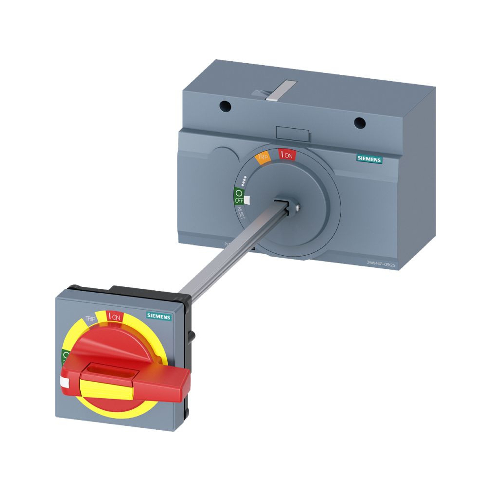 Siemens 3VA9467-0FK25 rotációs hajtás 3VA2-höz (400A,600A), komplett, piros/sárga, 8x8mm 300mm-es tengely