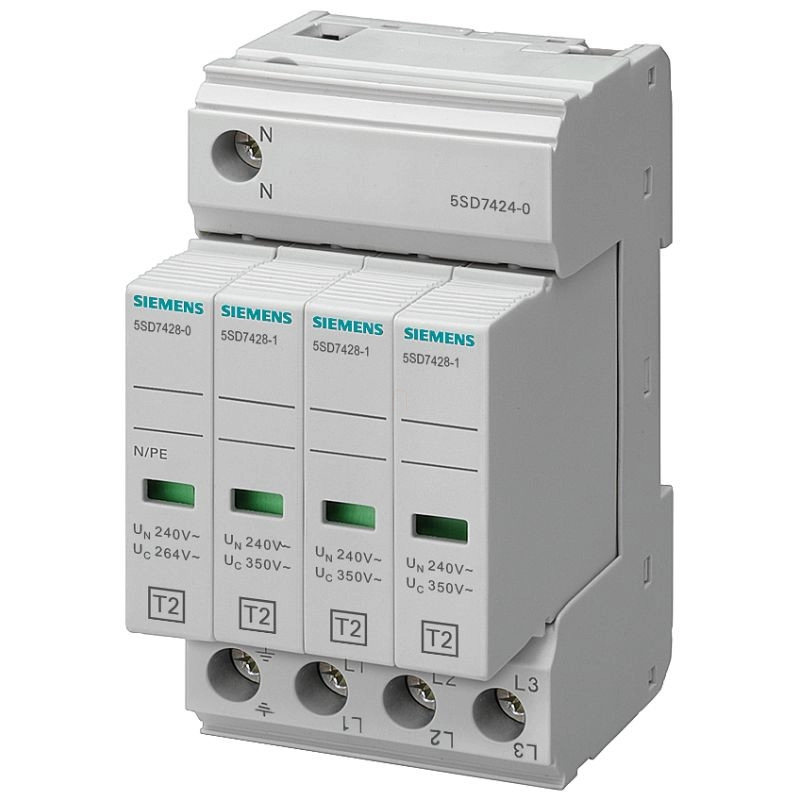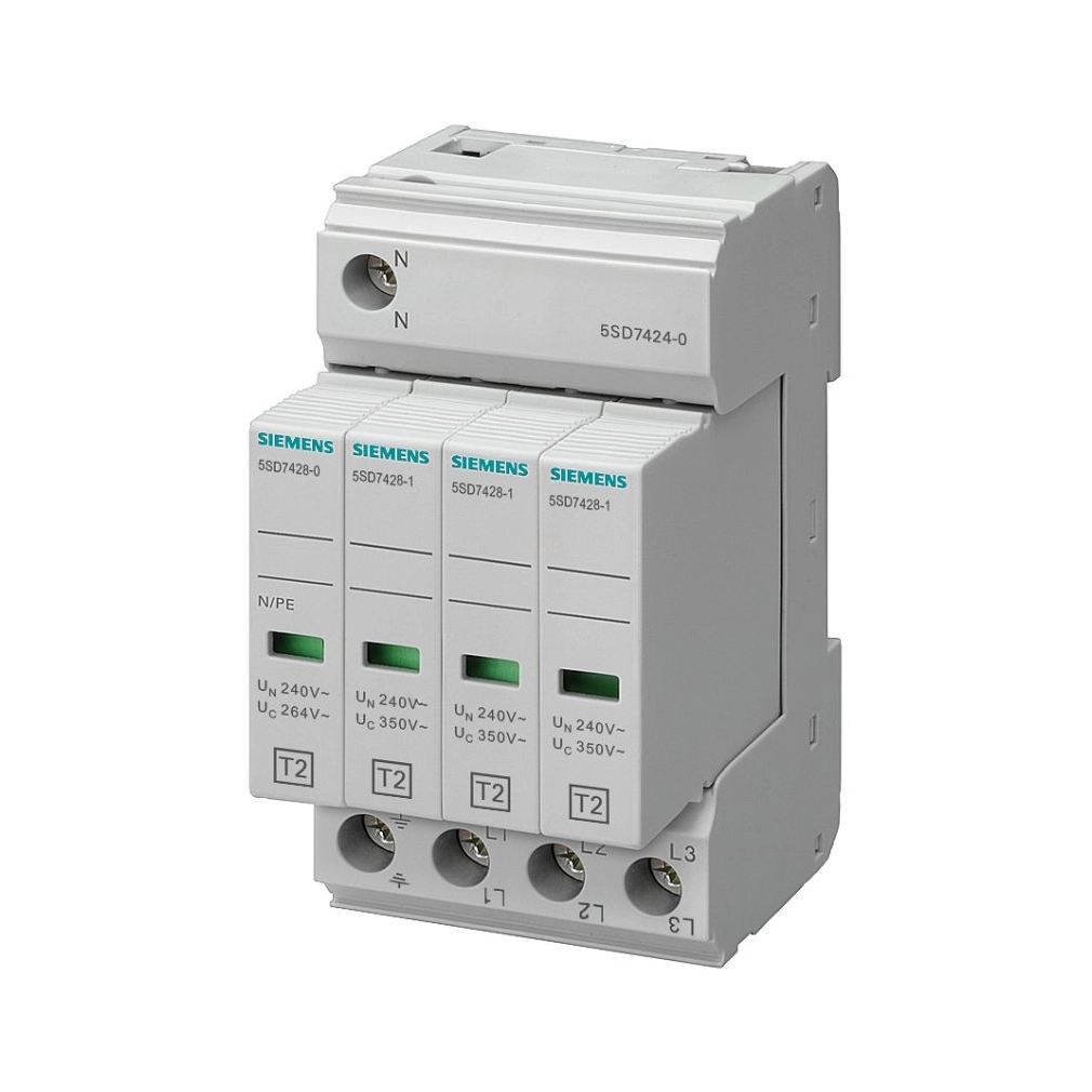 Siemens 5SD7424-0 túlfeszültség levezető, 3+1P C/T2/II 350V TN-S/TT