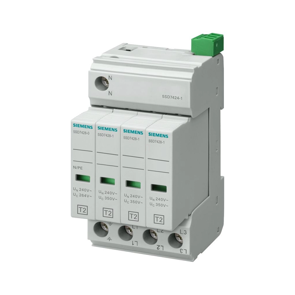 Siemens 5SD7424-1 túlfeszültség levezető, 3+1P C/T2/II 350V TN-S/TT, távjelzéssel