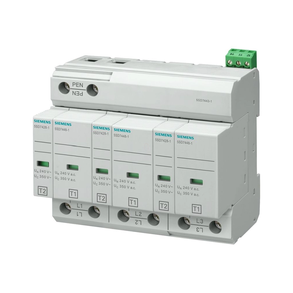 Siemens 5SD7443-1 kombinált túlfeszültség levezető, T1+2/B+C, 3P, 75kA, 350V, TNC, távjelzéssel