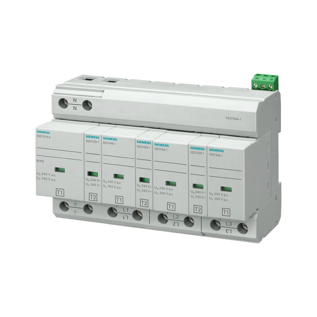 Siemens 5SD7444-1 kombinált túlfeszültség levezető, T1+2/B+C, 3+1P, 100kA, 350V, TNS/TT, távjelzéssel