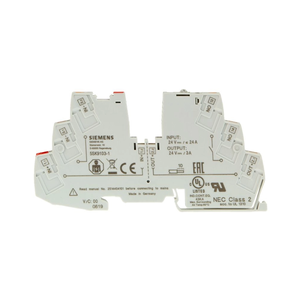 A megszakító berendezés elektronika egy megbízható és hatékony megoldás a 2A áramú DC 24V rendszerekhez, amely egy segédkapcsolót is tartalmaz.