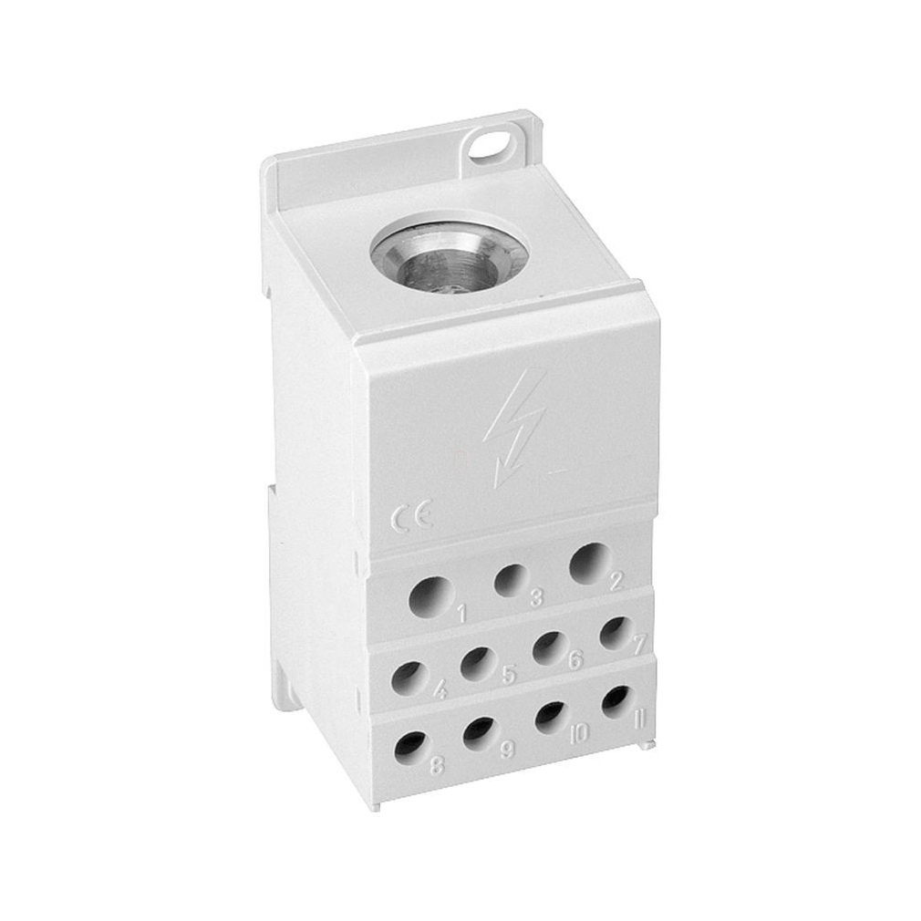 Siemens 5ST2511 elosztóblokk 1P 400A, be: 1x95-185mm2, ki: 2x2.5-25mm2, 5x 2.5-16mm2, 4x 2.5-10 mm2