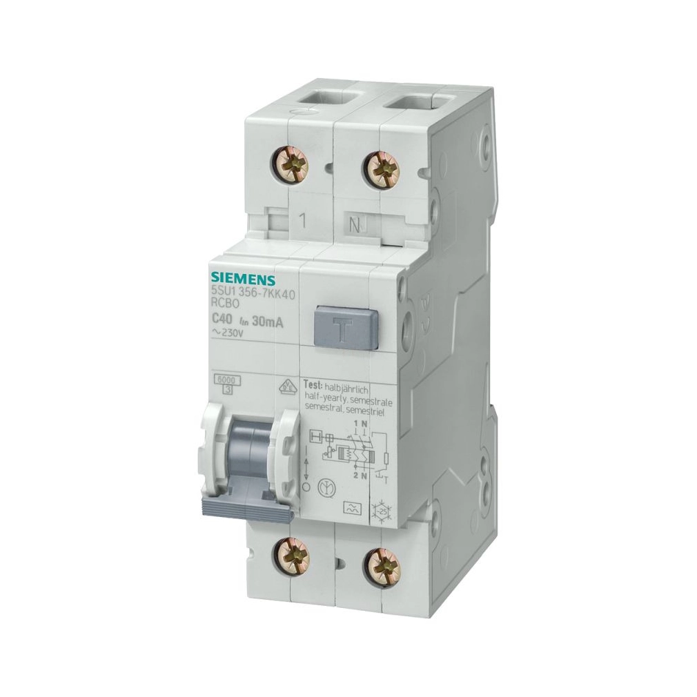 Rcbo, 4,5 kA, 1P+N, A típusú, 30 mA, C-Char, In: 6 A, Un AC: 230 V\nA RCBO SENTRON 5SU1 a túlterhelés, rövidzárlat és maradékáramok elleni kombinált védelemhez készült.