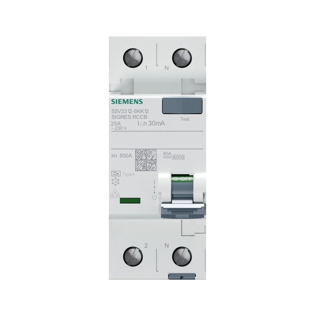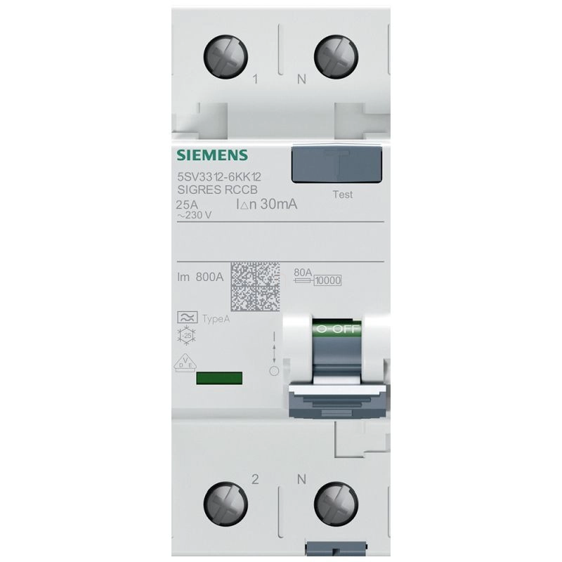 Siemens 5SV3312-6KK12 FI-relé 25A 2P 30mA, A típus, SIGRES, 230VAC